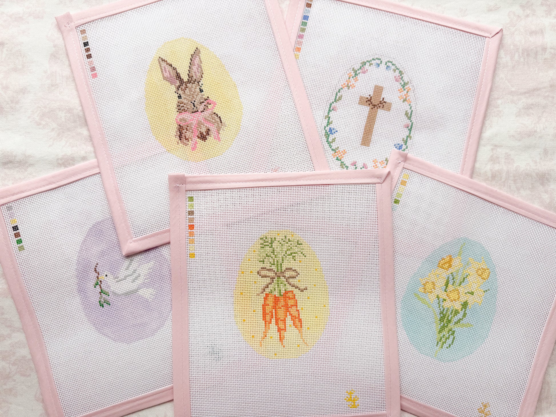 Canvases do not come with threads or pre-stitched.